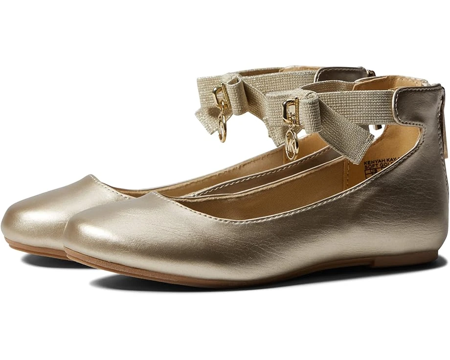 Let those young feet shimmer and shine wearing the MICHAEL Michael Kors(r0 Kids Kenyah Kay Flats.SKU: #9545411Man-made upper and lining.Easy slide-on style with zippered back closure.Elasticized ankle strap with an iconic logo ornament charm.Round toe silhouette.Man-made outsole.Imported.Measurements: